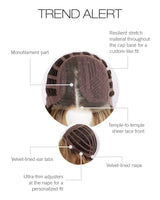 Trend Alert from the Designer Series by Gabor is the perfect bob with its lush layers and full volume. It can be styled for maximum volume or smoothed for a more subtle look. The Tru2Life synthetic fiber moves beautifully and gives the naturally waved texture depth and dimension.