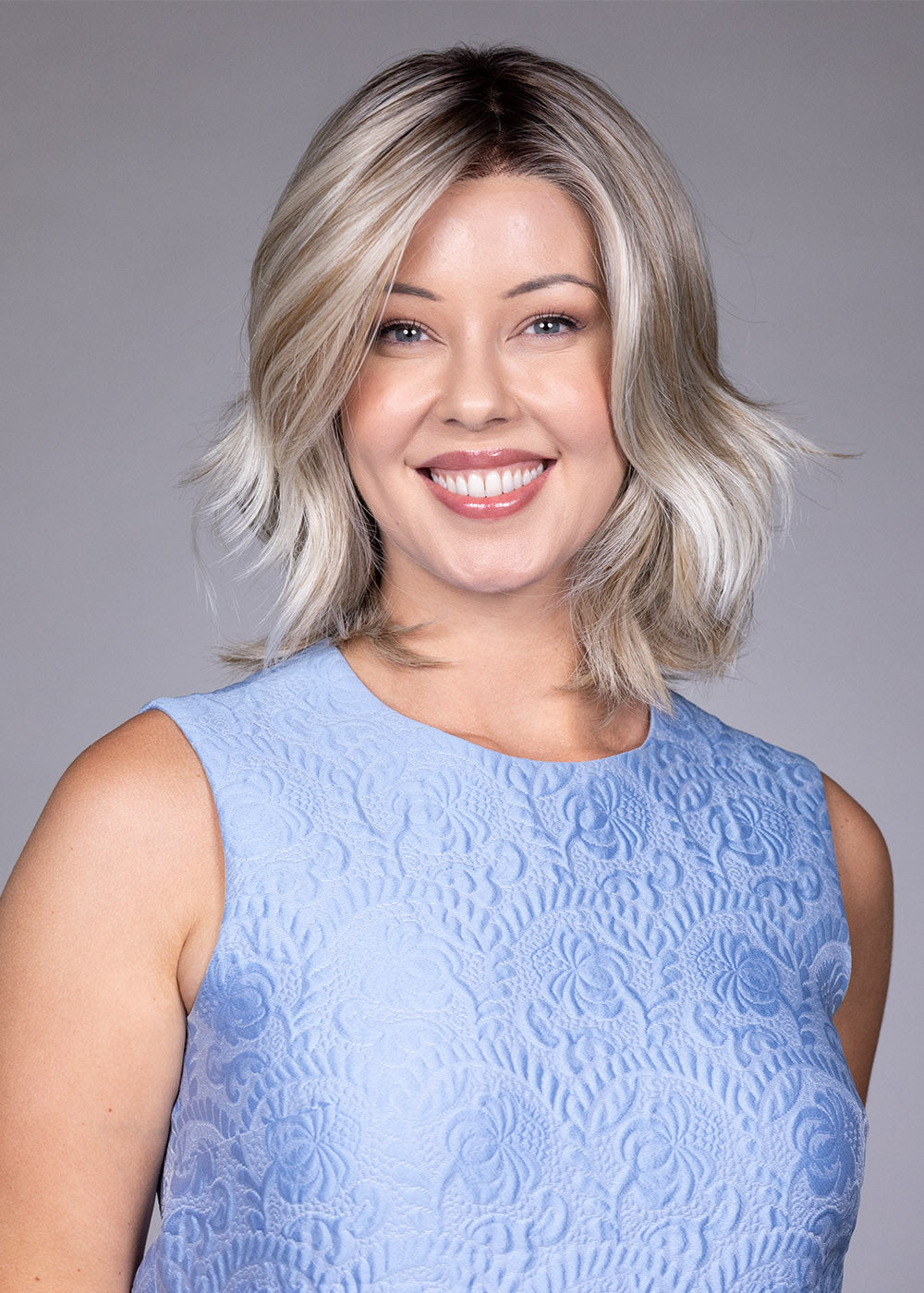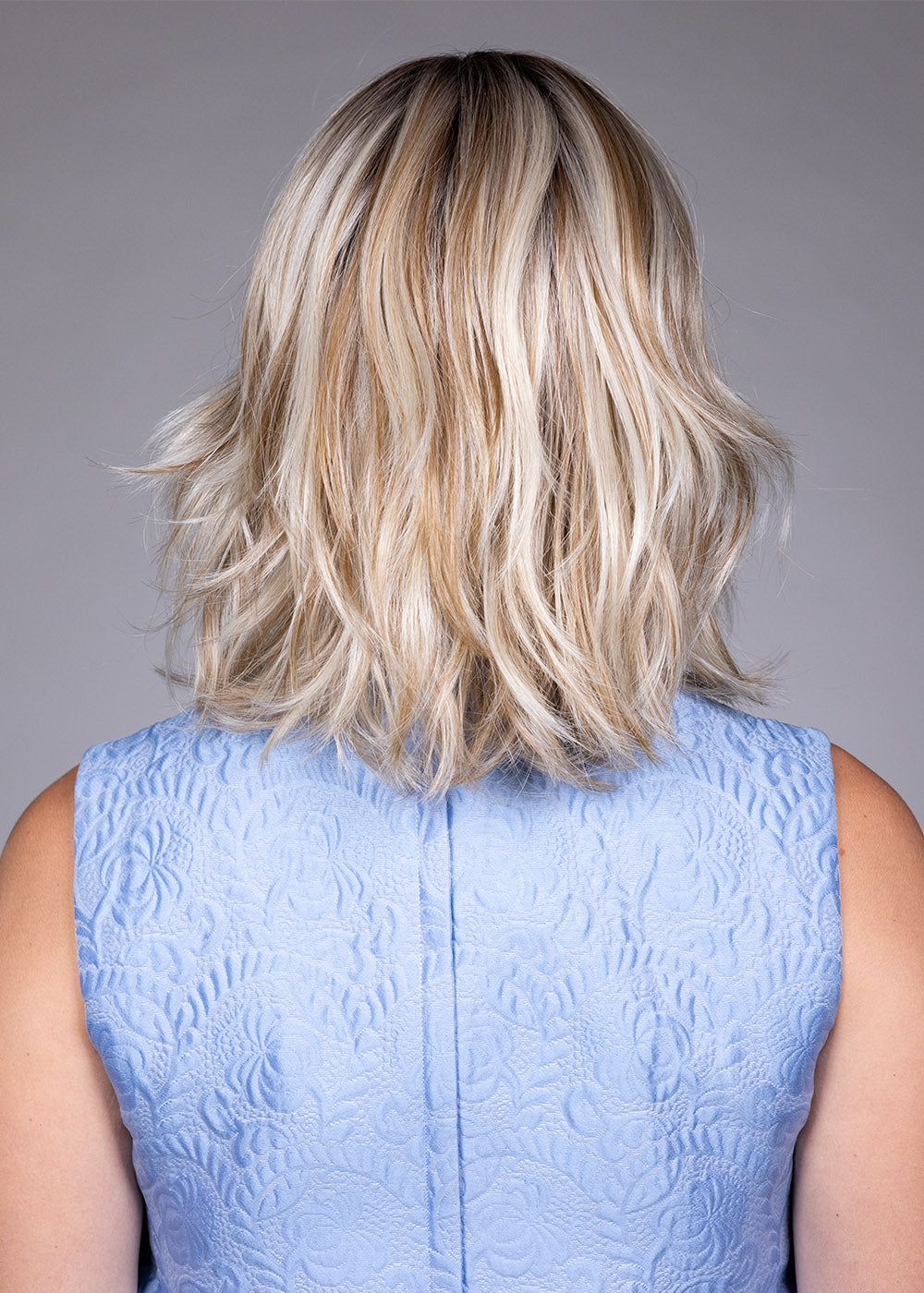 • Partially Hand-Tied Cap – each individual hair is carefully hand tied to the base. This creates natural movement and allows the hair to move freely. The soft stretch cap makes it more comfortable to wear and is ideal for a sensitive scalp.