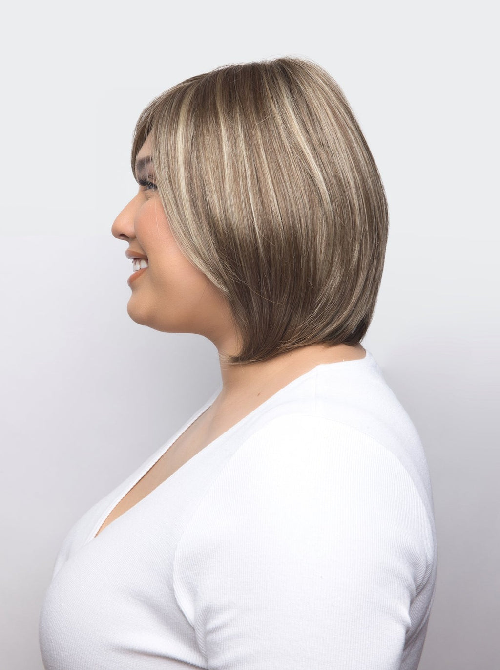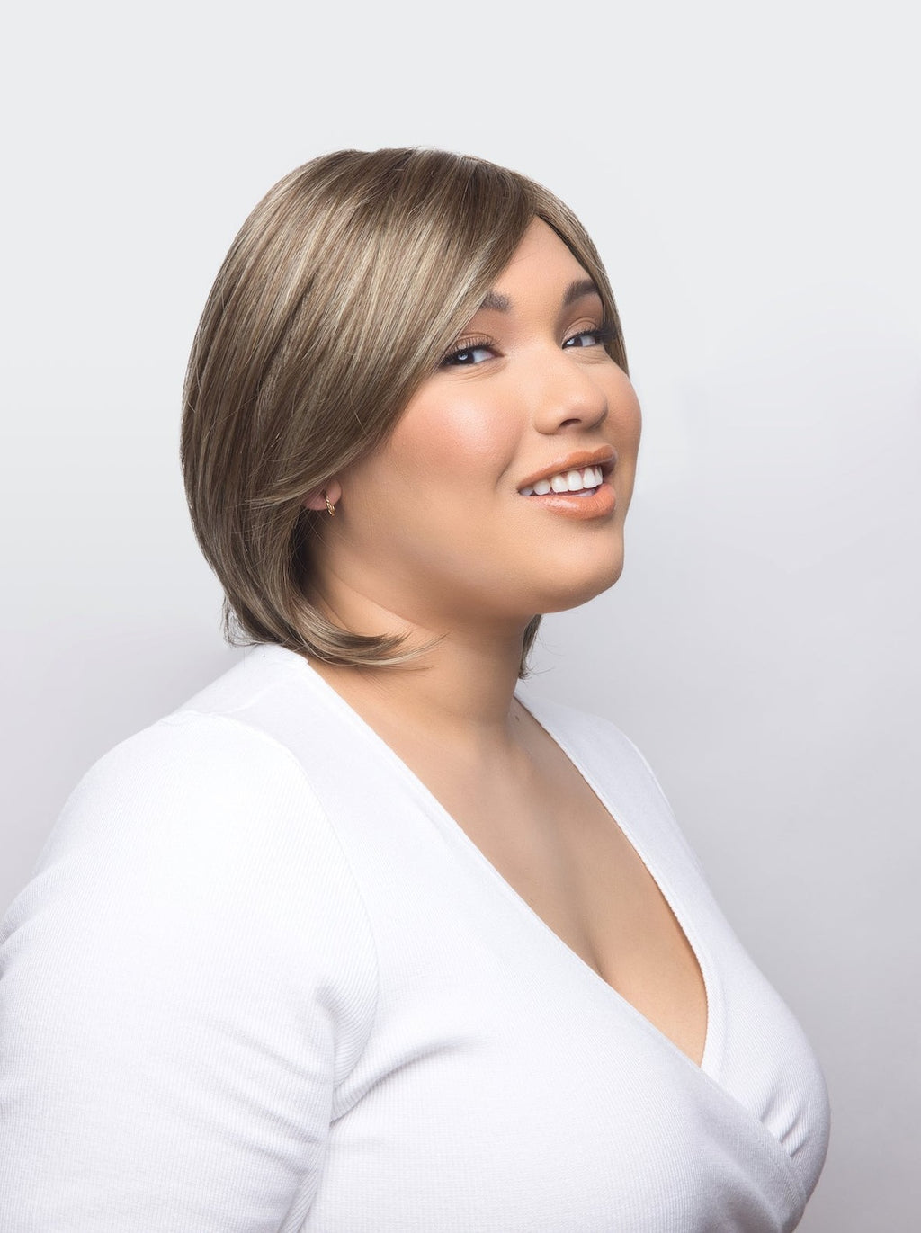 Colours may appear marginally different then shown in displayed image depending on the hair fibre or style. Each colour in the images shown can change from one screen to another. As well some hairpieces are made by hand, and each individual hair colour can slightly differ in shade. These colour swatches are intended to give you a good depiction of the shading, yet may fluctuate slightly from one piece to another.• design: wig